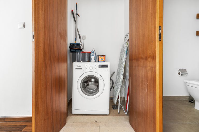 The bedroom is a calming retreat, furnished with a queen-sized bed, floor-to-ceiling wardrobes, and an en-suite bathroom with a walk-in shower and a thoughtfully curated set of aesthetic toiletries. For added convenience, there’s also a guest powder room outside the bedroom.