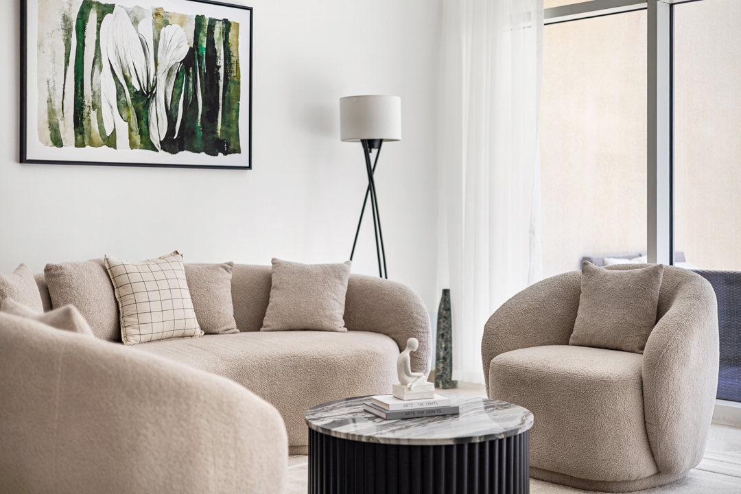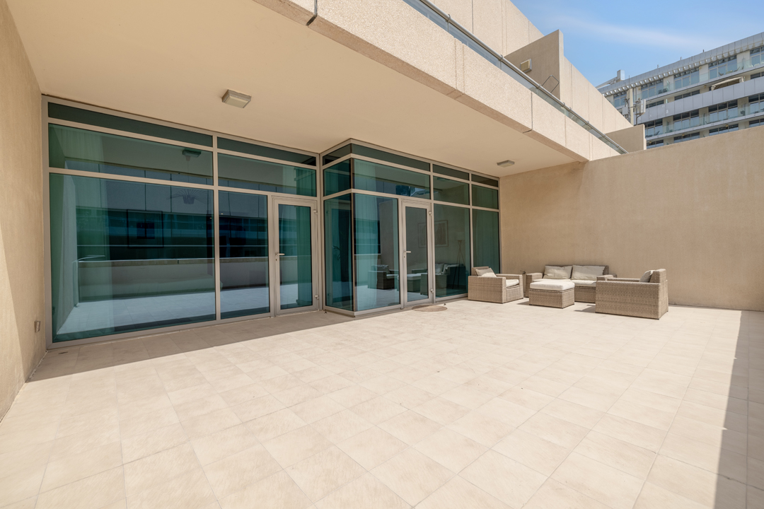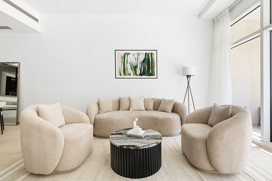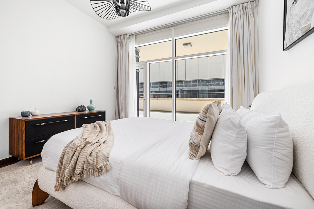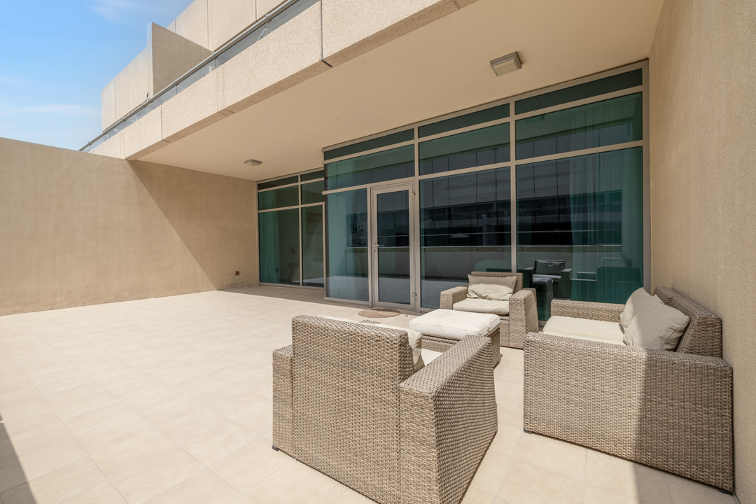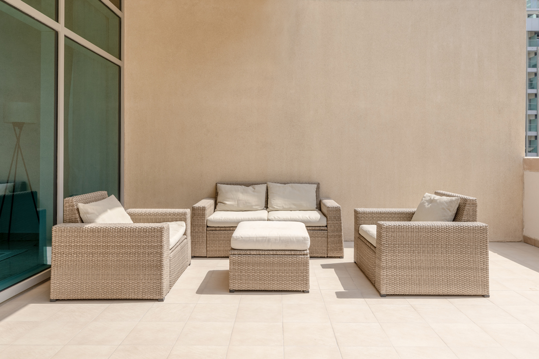 One of the highlights of this apartment is the expansive terrace, accessible from both the living room and the bedroom. It’s furnished with a 4-seater outdoor set and coffee table, making it the perfect spot for morning coffee, evening drinks, or simply enjoying Dubai’s vibrant cityscape.