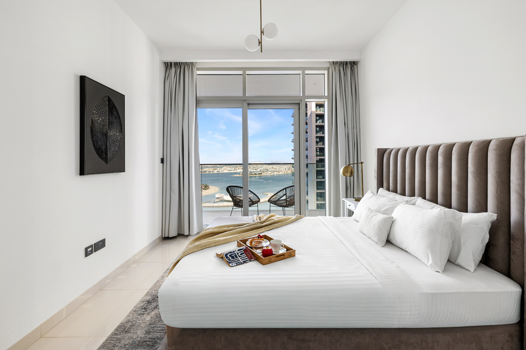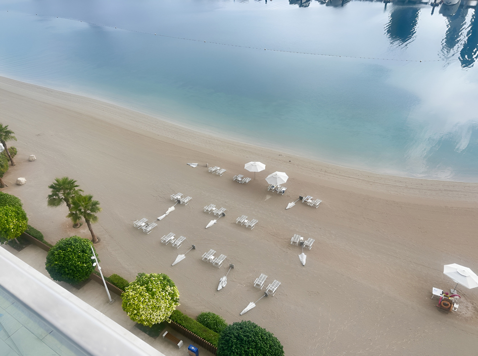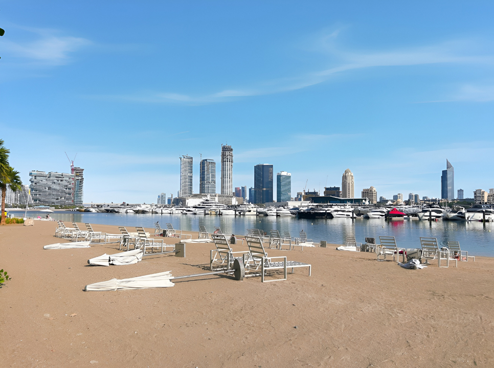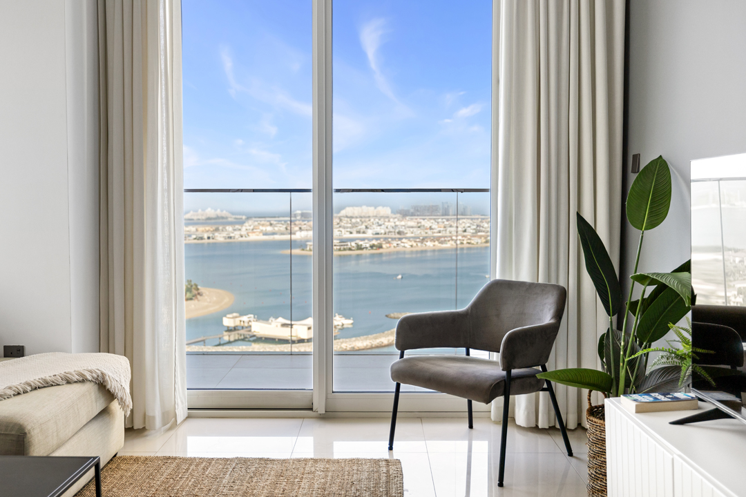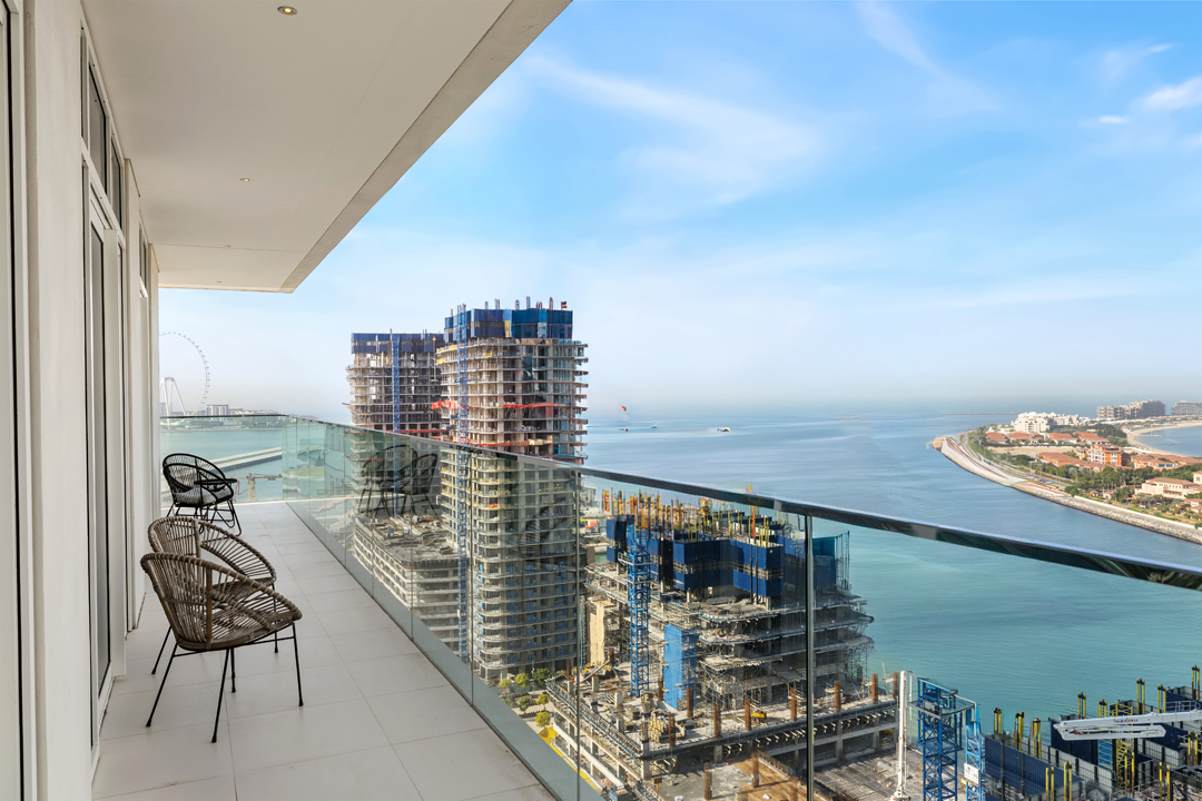 From your private balcony, enjoy uninterrupted panoramic vistas of Palm Jumeirah, where you can literally see iconic landmarks such as Atlantis The Royal, Anantara, rows of luxury residences, and parked yachts, all complemented by the striking Dubai Eye in Bluewaters.