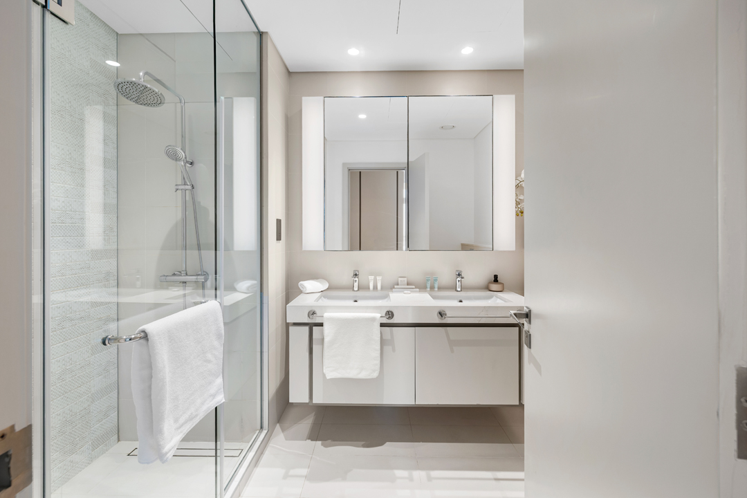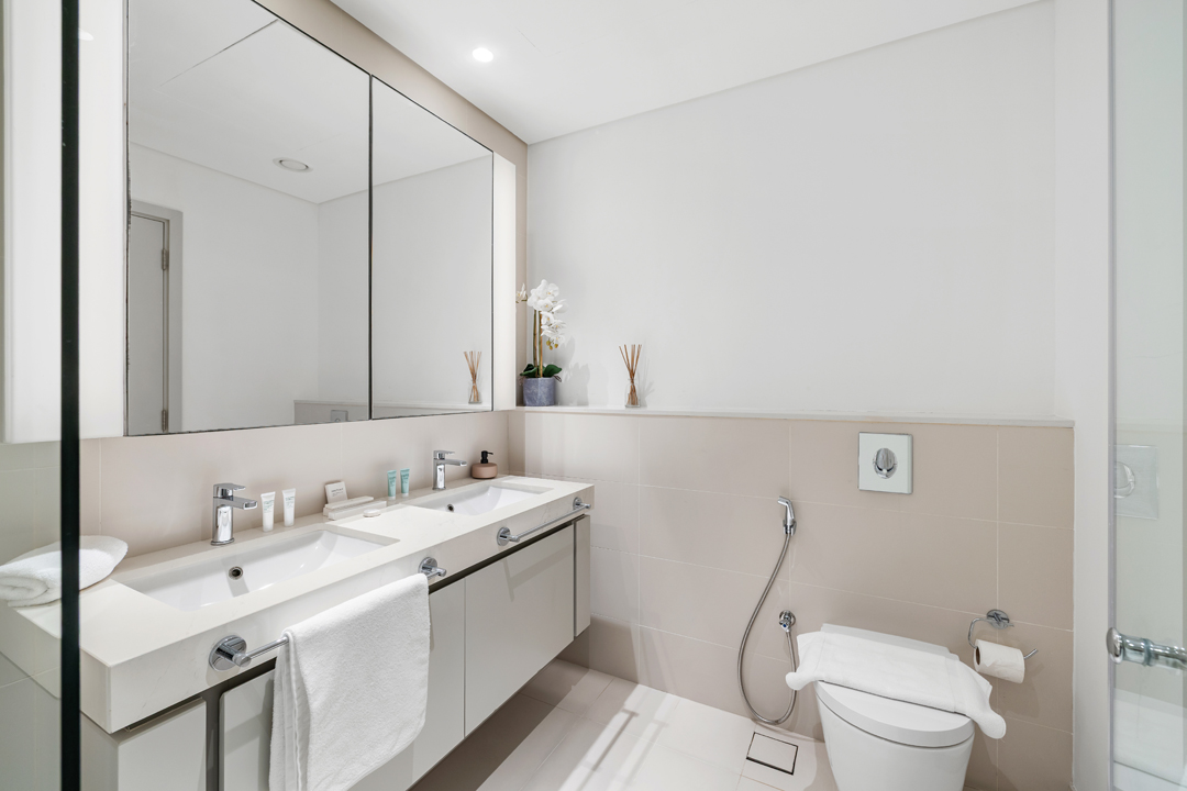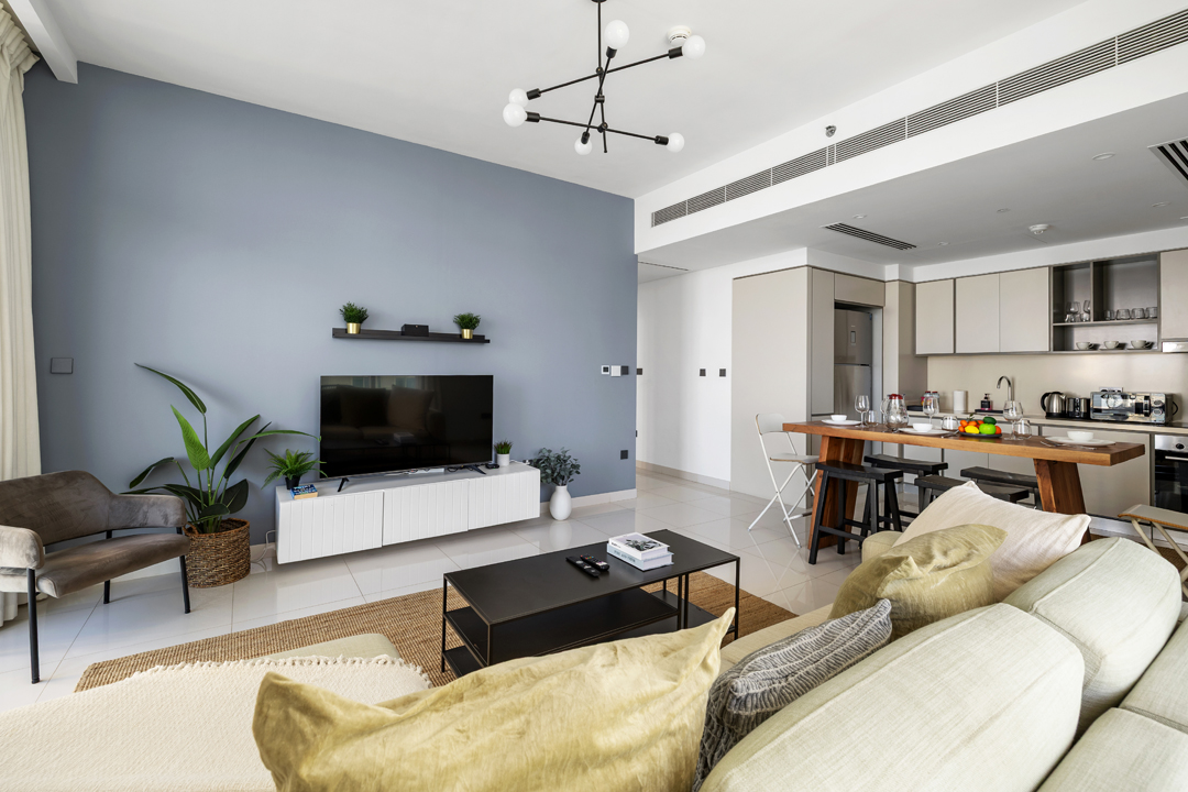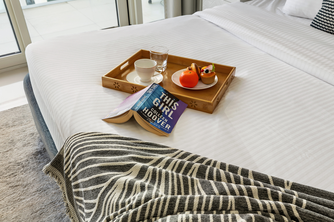 From your private balcony, enjoy uninterrupted panoramic vistas of Palm Jumeirah, where you can literally see iconic landmarks such as Atlantis The Royal, Anantara, rows of luxury residences, and parked yachts, all complemented by the striking Dubai Eye in Bluewaters.