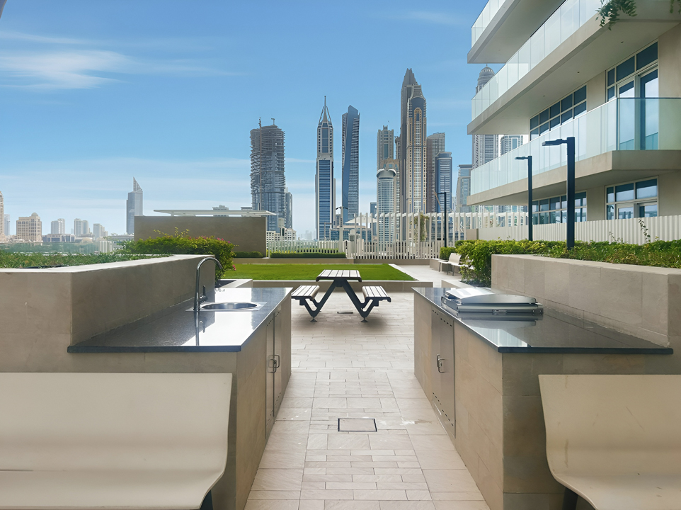 The apartment boasts direct beach access and shared premium amenities including sun loungers, a scenic beachfront walking pathway, a fully equipped gym, an infinity pool, and a BBQ area—perfect for a relaxed yet upscale seaside lifestyle.