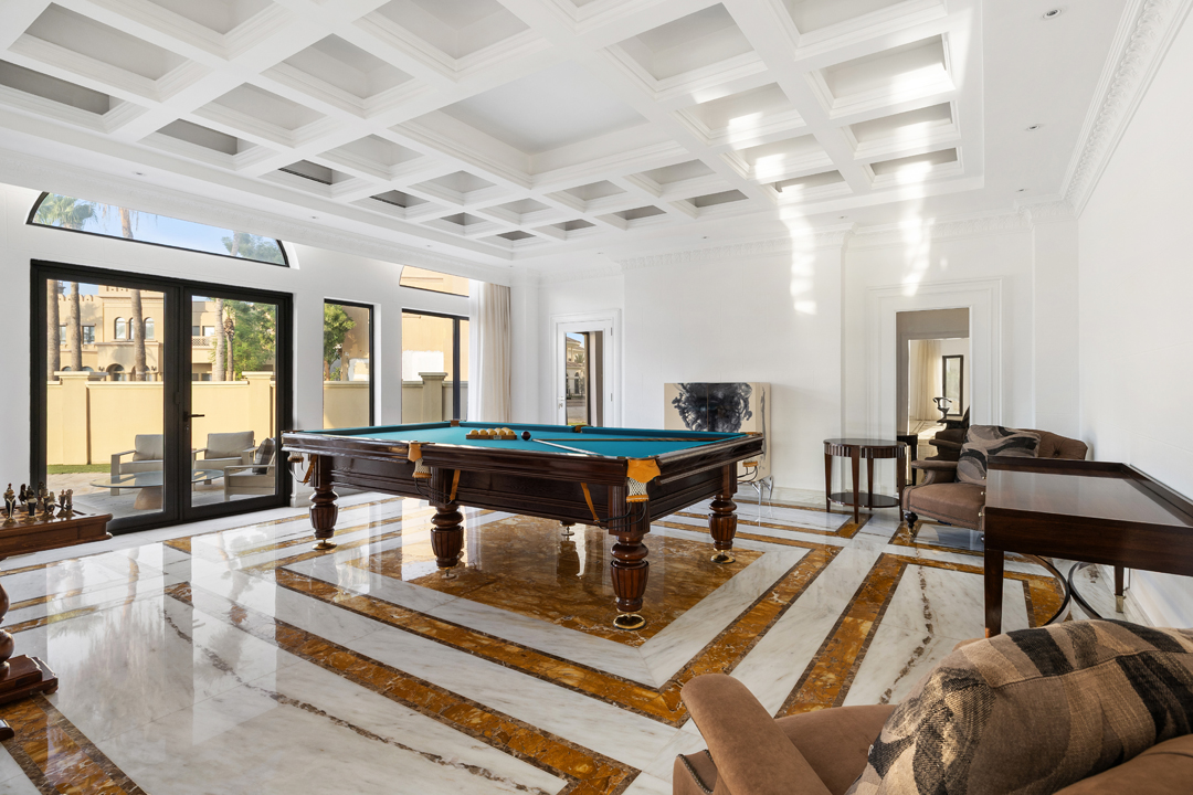 Entertainment and productivity meet seamlessly in this home: enjoy a fully equipped game room complete with a billiard pool table, chess set, and board games. A dedicated office room offers a work desk, ergonomic chair, and a treadmill—plus its own ensuite bathroom with a walk-in shower—ideal for business travelers or fitness-focused guests. The villa includes a fully equipped kitchen, a main dining set, an additional dining area, and a maid’s room with an attached bathroom and laundry facilities.
