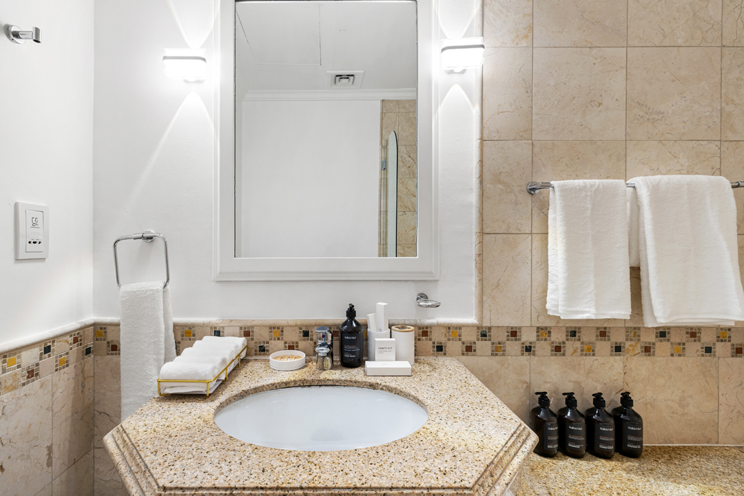 All five bedrooms are located upstairs accessible by stairs or villa's own elevator for privacy and comfort. The spacious master bedroom features a king-sized bed, seating area, walk-in closet, private balcony access, and a luxurious ensuite washroom with a bathtub. The second bedroom The second bedroom offers a king bed, a TV, an attached bathroom with a bathtub, and serene beach views. The third bedroom also includes a king-sized bed with an ensuite bathroom featuring a walk in shower. The fourth bedroom is ideal for groups or families, featuring two queen beds, a study desk, and an ensuite bathroom with a walk-in shower. The fifth bedroom includes a double bed, a small dresser, and its own ensuite with a walk-in shower. To complete your stay, the villa boasts a huge terrace and a separate balcony furnished with outdoor seating—perfect for sunset lounging or group gatherings.