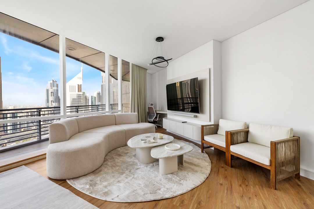 Unwind with a Smart TV enhanced by remote-controlled LED mood lights, perfect for movie nights or setting a relaxing ambiance. Step out onto the huge private balcony, furnished with outdoor seating, and take in breathtaking views of the Museum of the Future and Gevora Hotel, the world’s tallest hotel—a truly iconic Dubai skyline experience.