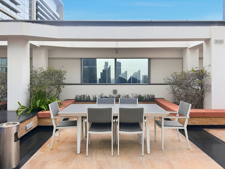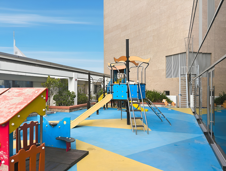 The building itself offers an impressive grand lobby and exceptional amenities, including a 49th-floor pool and jacuzzi with sun loungers, a fully equipped gym, shared outdoor dining areas, and both indoor and outdoor children’s play areas.