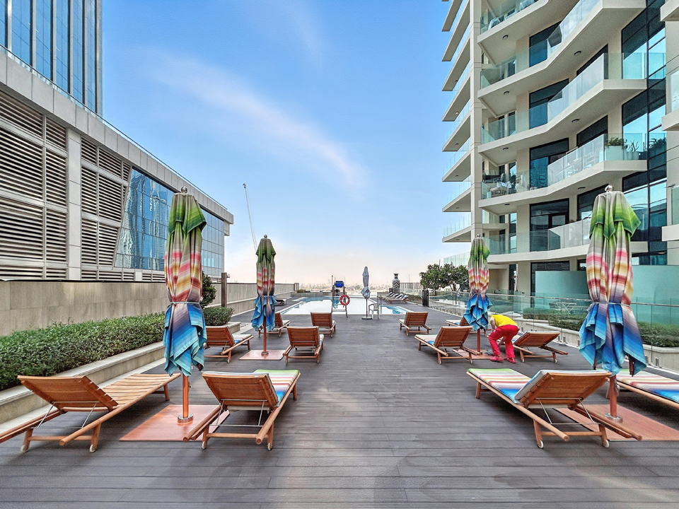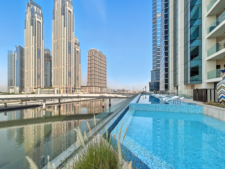 Experience luxurious canal-side living in this elegant 3-bedroom apartment with maid’s room and terrace at Urban Oasis 1, Business Bay. Featuring a fully equipped closed kitchen, spacious living area with smart TV, and floor-to-ceiling windows showcasing the Dubai Canal, this home combines comfort and style in every corner. The master bedroom offers a king bed, bathtub, and road view, while the second and third bedroom includes a queen bed and canal view. Enjoy relaxing on the huge furnished terrace overlooking the Canal and Gevora Hotel.