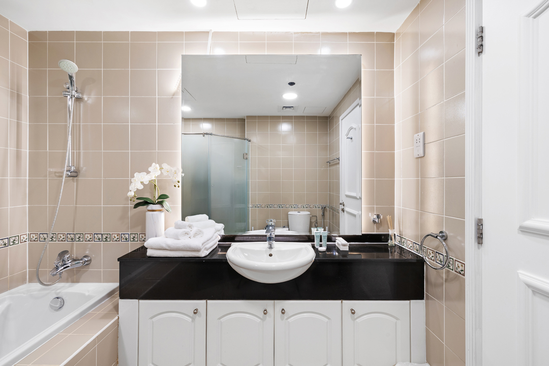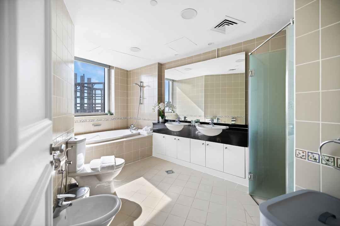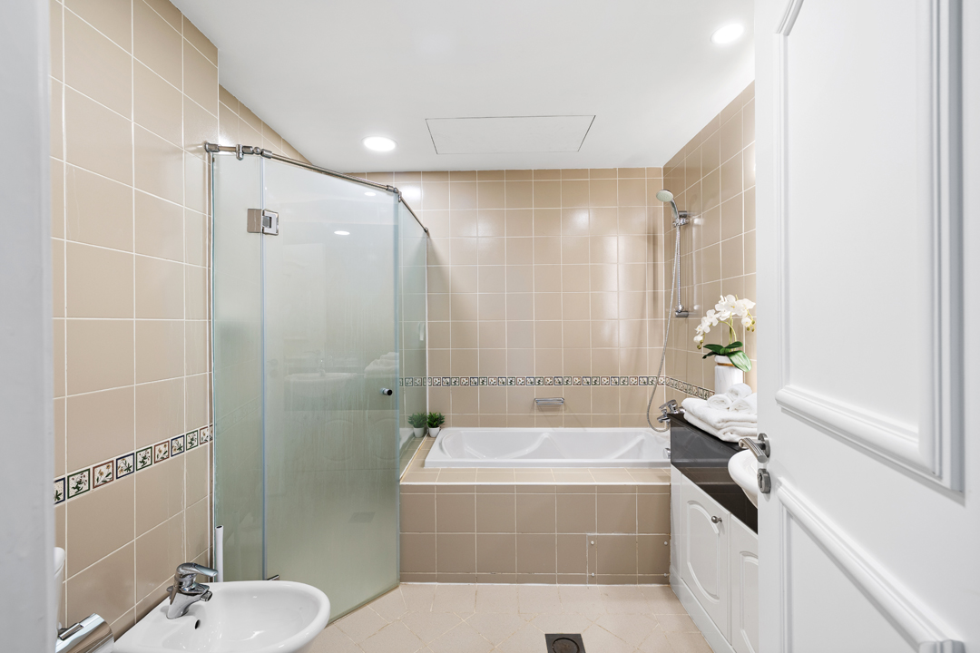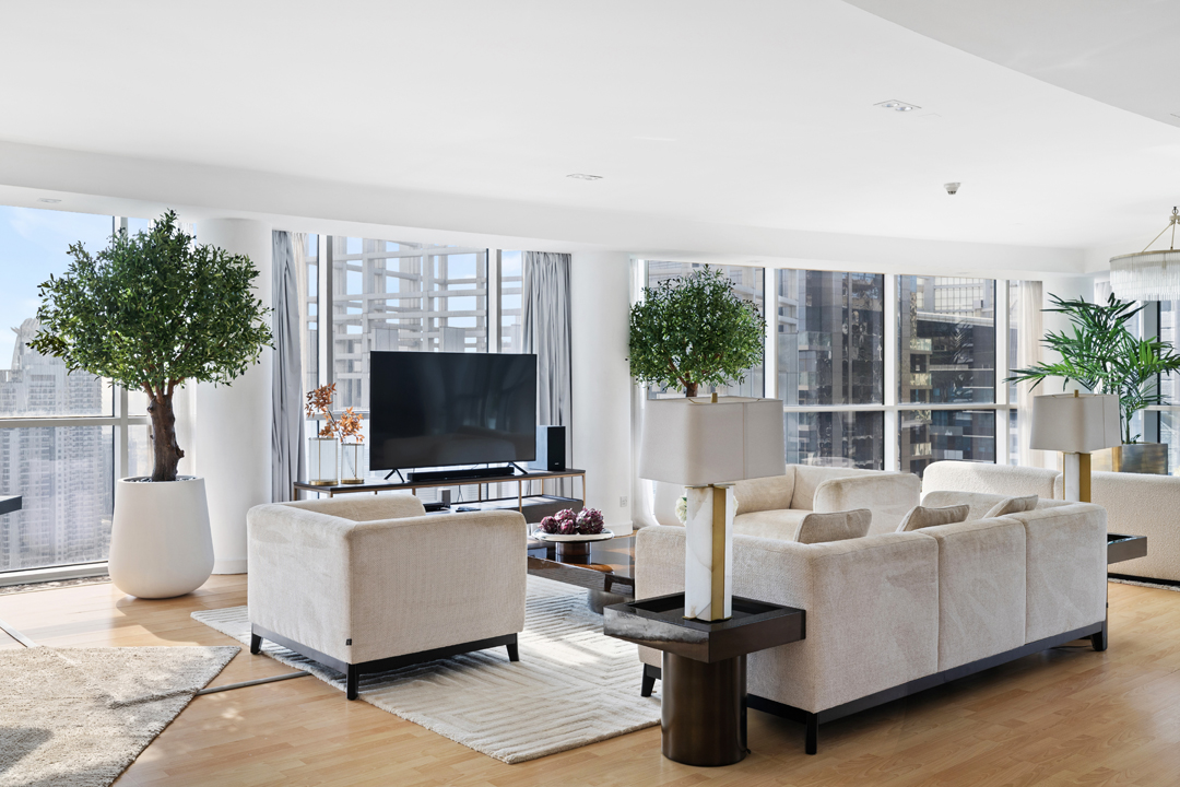 The third and fourth bedrooms also offer queen-size beds, each with a charming sitting corner by the window to fully enjoy the Marina views. Even the ensuite bathrooms are Marina-facing, complete with bathtubs and separate walk-in showers, adding a rare touch of indulgence.