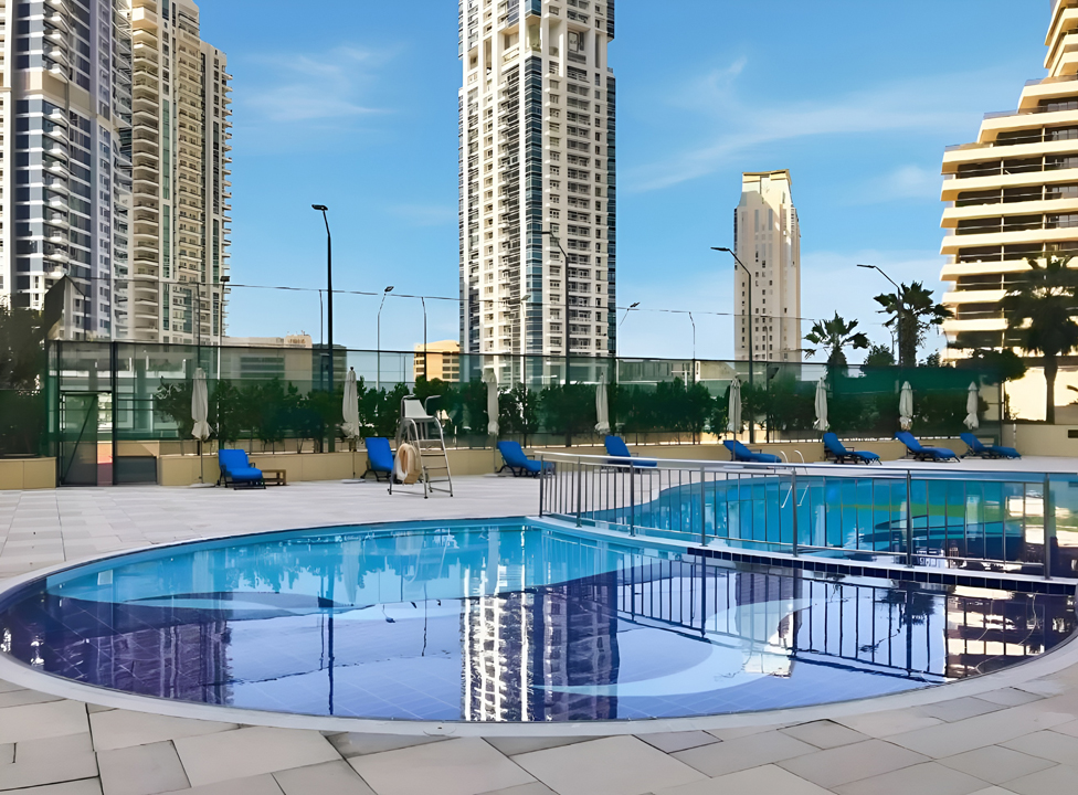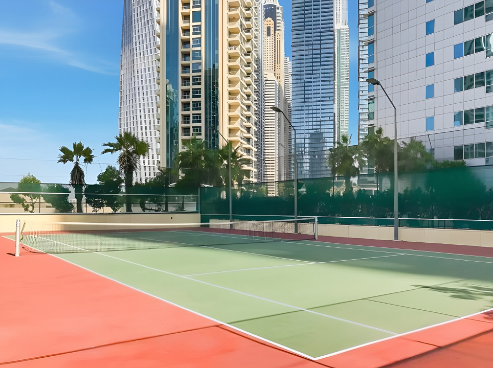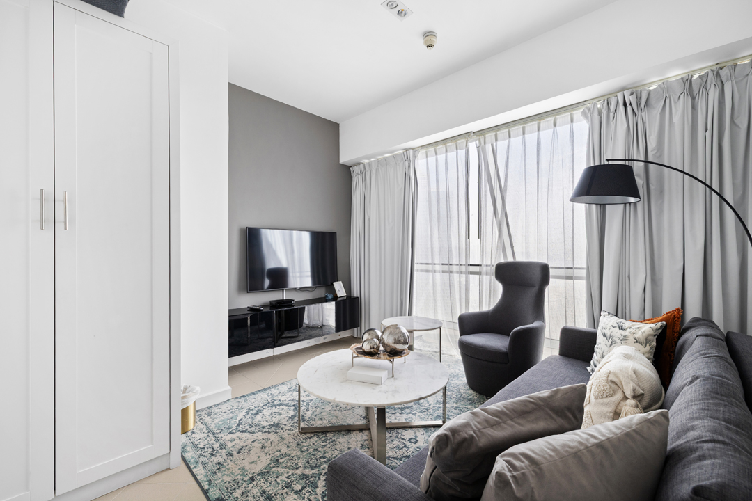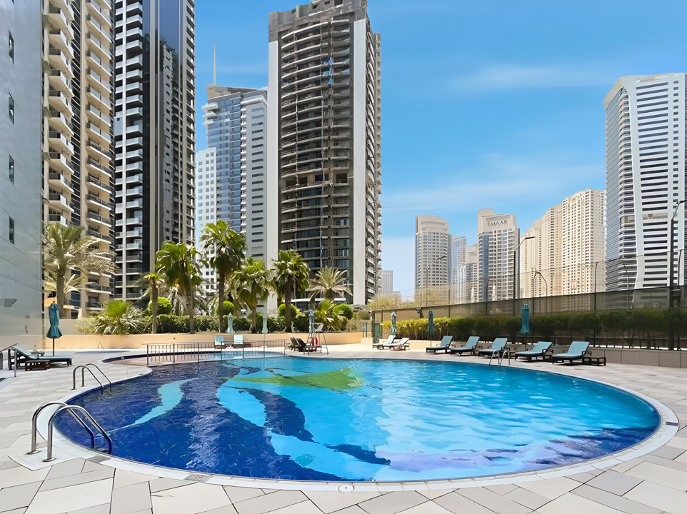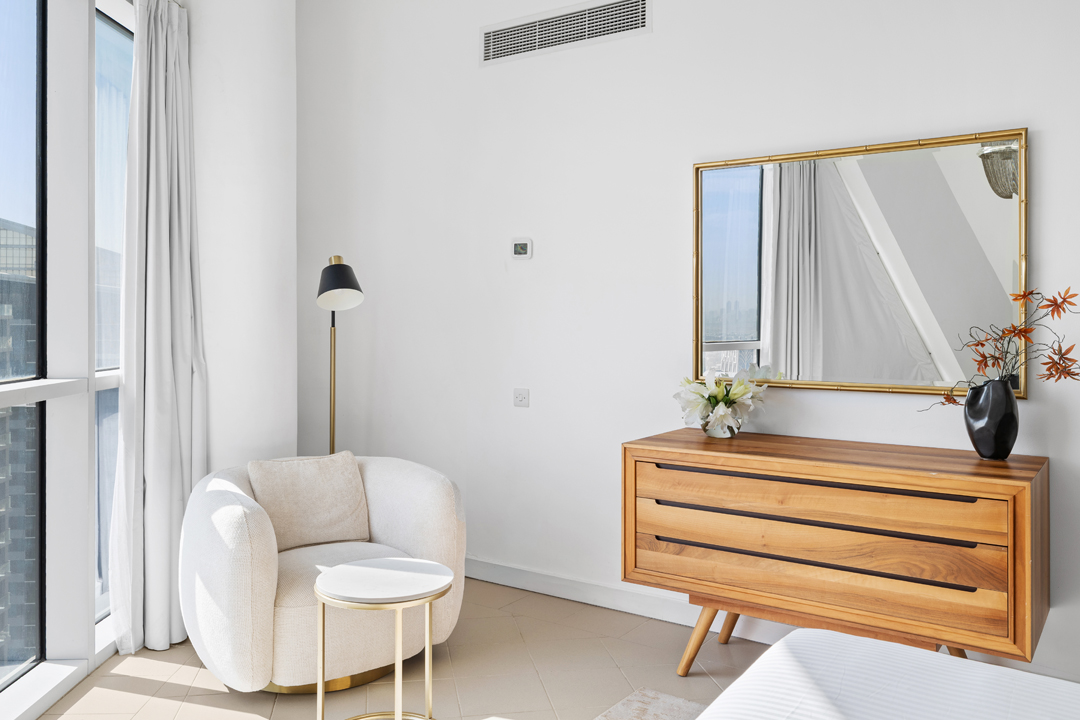 Guests also enjoy access to Marina Terrace’s premium amenities, including a shared swimming pool, fully equipped gym, and badminton court. The location is unbeatable—just steps away from Marina Walk, surrounded by cafés, fine-dining restaurants, and waterfront lounges. Supermarkets such as Carrefour and Choithrams are nearby for daily essentials, while JBR Beach, Bluewaters Island, and Dubai Marina Mall are only minutes away. Public transport options including tram, metro, and taxis are easily accessible, ensuring seamless travel around the city.