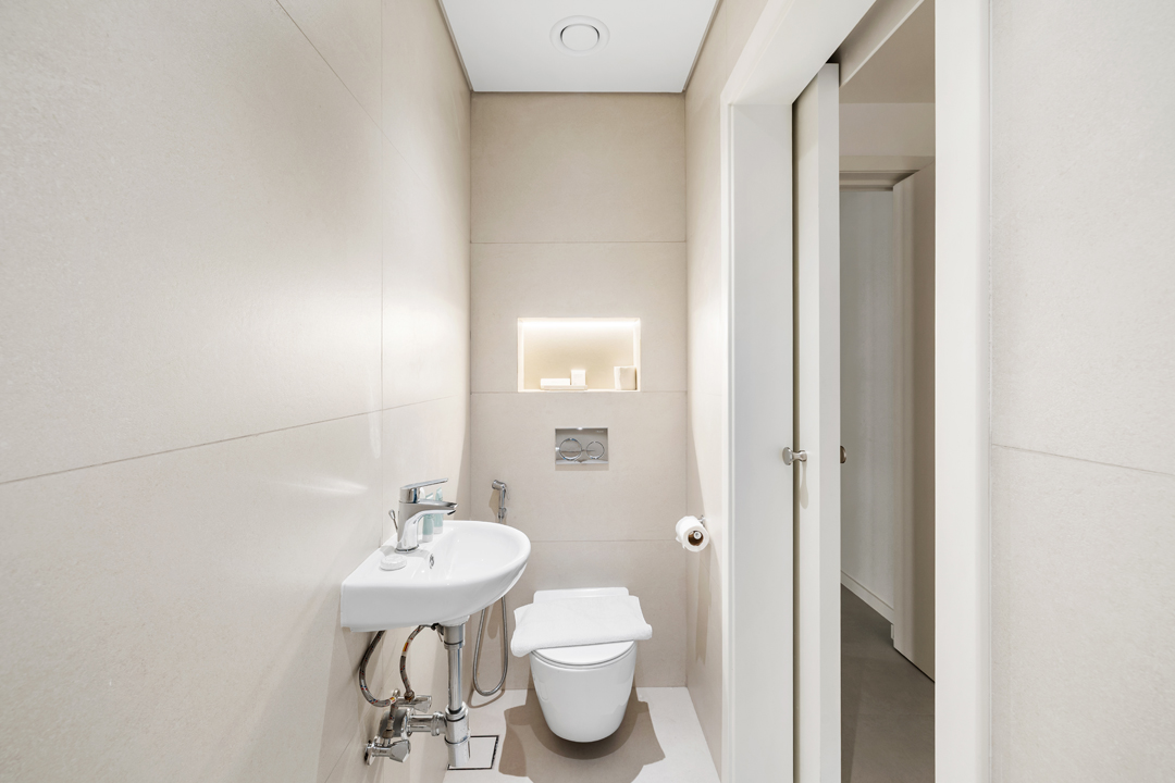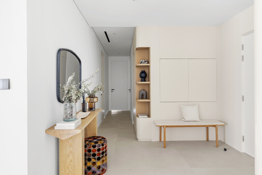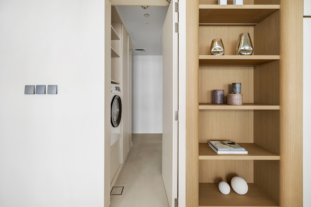 The apartment includes a guest powder room, a private maid’s room with ensuite shower, washer and dryer, and its own access from the main door, offering added convenience and privacy.